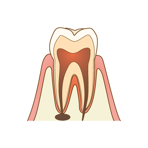 治療が不完全だったり、被せ物と歯の間にわずかな隙間ができ、そこから細菌が再侵入したりすると、根っこの先に細菌の住処ができてしまいます。すると、体が細菌と戦い、その結果として根の先に膿が溜まり、炎症を引き起こすのです。